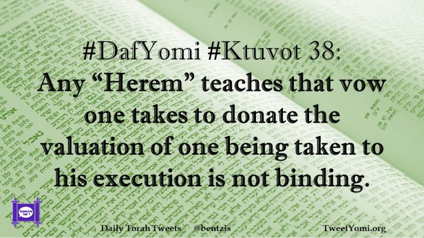 DafYomi, Ktuvot #DafYomi #Ktuvot 38 Date: August 15, 2022Author: ysspitz #DafYomi #Ktuvot 38: Any “Herem” teaches that vow one takes to donate the valuation of one being taken to his execution is not binding. Share this: Share on X (Opens in new window) X Share on Facebook (Opens in new window) Facebook Like Loading... Related