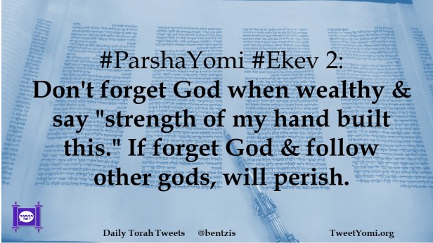 #ParshaYomi #Ekev 2: Don’t forget God when wealthy & say “strength of my hand built this.” If forget God & follow other gods, will perish.