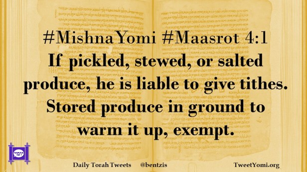 #MishnaYomi #Maasrot 4:1 If pickled, stewed, or salted produce, he is liable to give tithes. Stored produce in ground to warm it up, exempt.