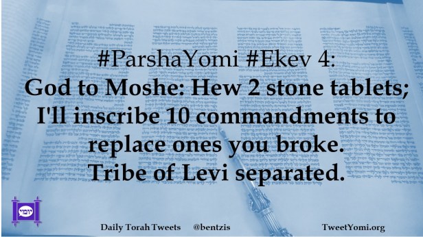 #ParshaYomi #Ekev 4: God to Moshe: Hew 2 stone tablets; I’ll inscribe 10 commandments to replace ones you broke. Tribe of Levi separated.