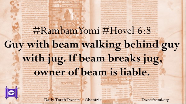 Hovel, RambamYomi #RambamYomi #Hovel 6:8 Date: August 21, 2022Author: ysspitz #RambamYomi #Hovel 6:8 Guy with beam walking behind guy with jug. If beam breaks jug, owner of beam is liable. Share this: Share on X (Opens in new window) X Share on Facebook (Opens in new window) Facebook Like Loading... Related