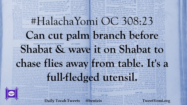 #HalachaYomi OC 308:23 Can cut palm branch before Shabat & wave it on Shabat to chase flies away from table. It’s a full-fledged utensil.
