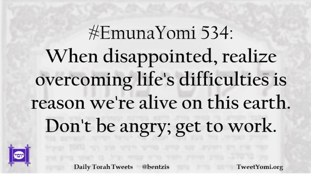 #EmunaYomi 534: When disappointed, realize overcoming life’s difficulties is reason we’re alive on this earth. Don’t be angry; get to work.