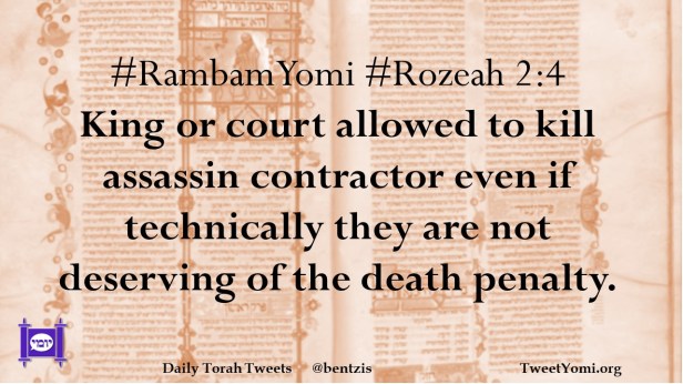 #RambamYomi #Rozeah 2:4 King or court allowed to kill assassin contractor even if technically they are not deserving of the death penalty.