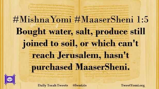 #MishnaYomi #MaaserSheni 1:5 Bought water, salt, produce still joined to soil, or which can’t reach Jerusalem, hasn’t purchased MaaserSheni.