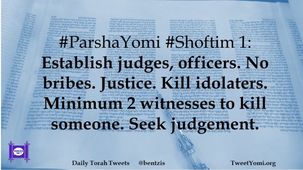 #ParshaYomi #Shoftim 1: Establish judges, officers. No bribes. Justice. Kill idolaters. Minimum 2 witnesses to kill someone. Seek judgement.