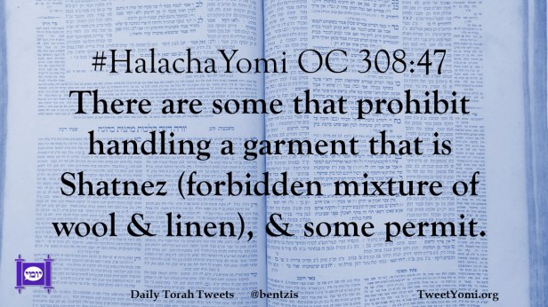 #HalachaYomi OC 308:47 There are some that prohibit handling a garment that is Shatnez (forbidden mixture of wool & linen), & some permit.