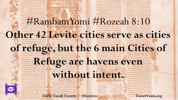 #RambamYomi #Rozeah 8:10 Other 42 Levite cities serve as cities of refuge, but the 6 main Cities of Refuge are havens even without intent.