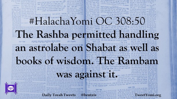 #HalachaYomi OC 308:50 The Rashba permitted handling an astrolabe on Shabat as well as books of wisdom. The Rambam was against it.