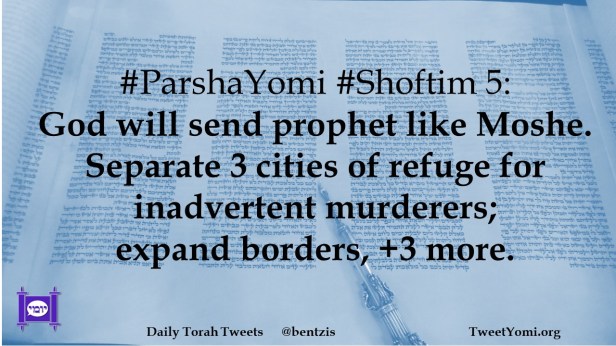 #ParshaYomi #Shoftim 5: God will send prophet like Moshe. Separate 3 cities of refuge for inadvertent murderers; expand borders, +3 more.