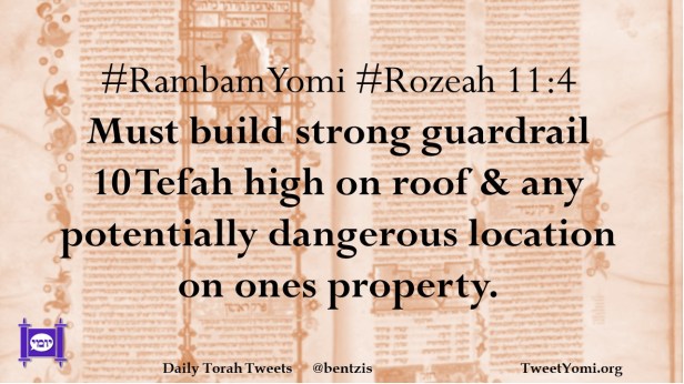 #RambamYomi #Rozeah 11:4 Must build strong guardrail 10 Tefah high on roof & any potentially dangerous location on ones property.
