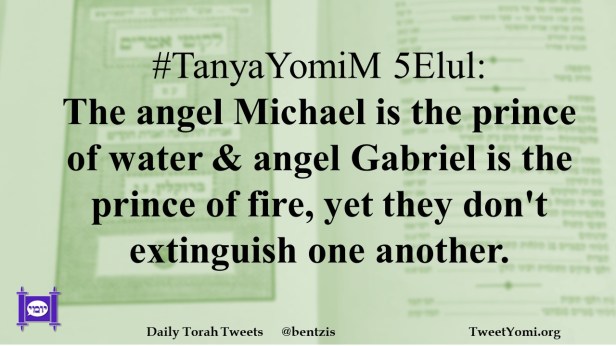 #TanyaYomiM 5Elul: The angel Michael is the prince of water & angel Gabriel is the prince of fire, yet they don’t extinguish one another.