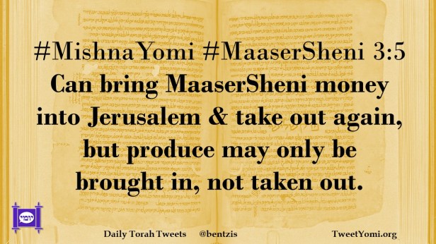 #MishnaYomi #MaaserSheni 3:5 Can bring MaaserSheni money into Jerusalem & take out again, but produce may only be brought in, not taken out.