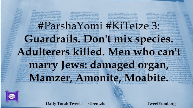 #ParshaYomi #KiTetze 3: Guardrails. Don’t mix species. Adulterers killed. Men who can’t marry Jews: damaged organ, Mamzer, Amonite, Moabite.
