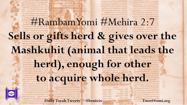 #RambamYomi #Mehira 2:7 Sells or gifts herd & gives over the Mashkuhit (animal that leads the herd), enough for other to acquire whole herd.