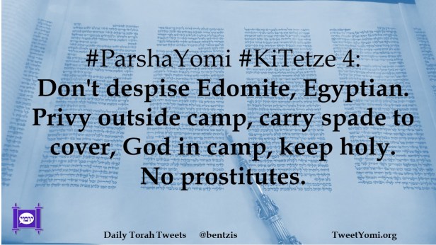 #ParshaYomi #KiTetze 4: Don’t despise Edomite, Egyptian. Privy outside camp, carry spade to cover, God in camp, keep holy. No prostitutes.