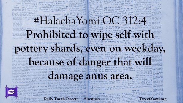 #HalachaYomi OC 312:4 Prohibited to wipe self with pottery shards, even on weekday, because of danger that will damage anus area.