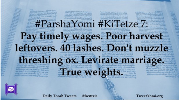 #ParshaYomi #KiTetze 7: Pay timely wages. Poor harvest leftovers. 40 lashes. Don’t muzzle threshing ox. Levirate marriage. True weights.