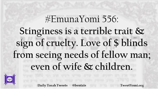 #EmunaYomi 556: Stinginess is a terrible trait & sign of cruelty. Love of $ blinds from seeing needs of fellow man; even of wife & children.