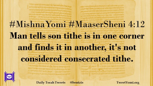 #MishnaYomi #MaaserSheni 4:12 Man tells son tithe is in one corner and finds it in another, it’s not considered consecrated tithe.