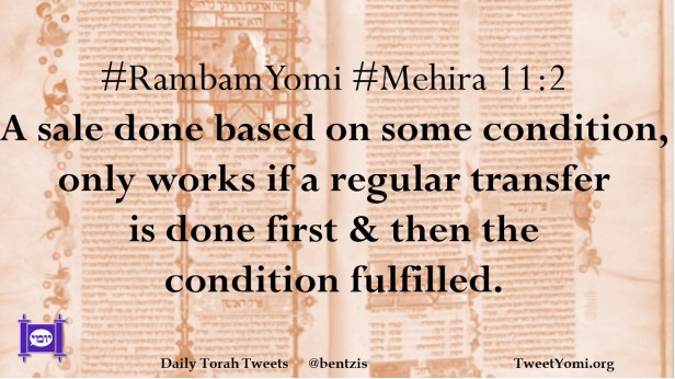 #RambamYomi #Mehira 11:2 A sale done based on some condition, only works if a regular transfer is done first & then the condition fulfilled.