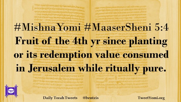 #MishnaYomi #MaaserSheni 5:4 Fruit of the 4th yr since planting or its redemption value consumed in Jerusalem while ritually pure.