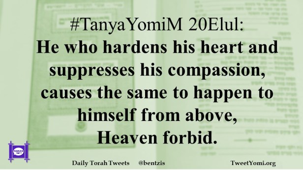 #TanyaYomiM 20Elul: He who hardens his heart and suppresses his compassion, causes the same to happen to himself from above, Heaven forbid.
