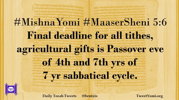 #MishnaYomi #MaaserSheni 5:6 Final deadline for all tithes, agricultural gifts is Passover eve of 4th and 7th yrs of 7 yr sabbatical cycle.