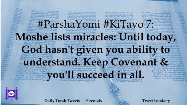 #ParshaYomi #KiTavo 7: Moshe lists miracles: Until today, God hasn’t given you ability to understand. Keep Covenant & you’ll succeed in all.
