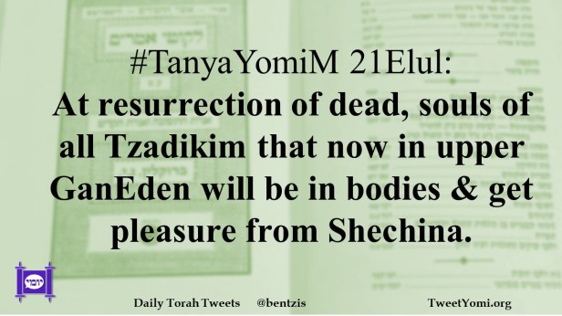 #TanyaYomiM 21Elul: At resurrection of dead, souls of all Tzadikim that now in upper GanEden will be in bodies & get pleasure from Shechina.