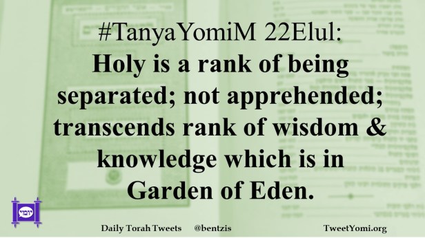 #TanyaYomiM 22Elul: Holy is a rank of being separated; not apprehended; transcends rank of wisdom & knowledge which is in Garden of Eden.