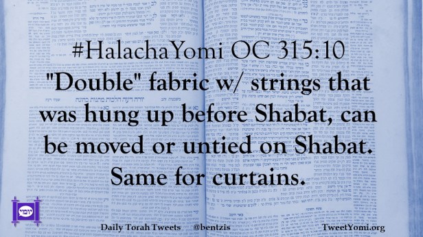#HalachaYomi OC 315:10 “Double” fabric w/ strings that was hung up before Shabat, can be moved or untied on Shabat. Same for curtains.