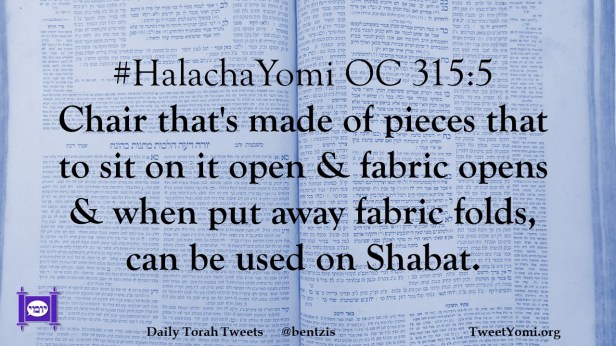 #HalachaYomi OC 315:5 Chair that’s made of pieces that to sit on it open & fabric opens & when put away fabric folds, can be used on Shabat.