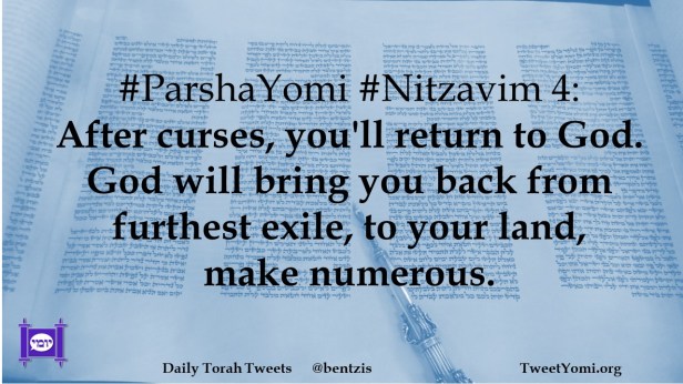 #ParshaYomi #Nitzavim 4: After curses, you’ll return to God. God will bring you back from furthest exile, to your land, make numerous.