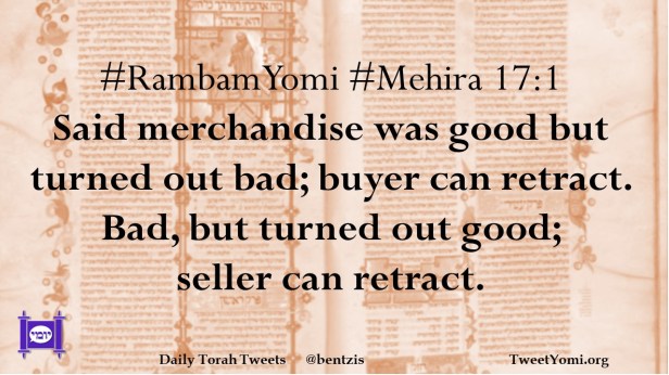 #RambamYomi #Mehira 17:1 Said merchandise was good but turned out bad; buyer can retract. Bad, but turned out good; seller can retract.