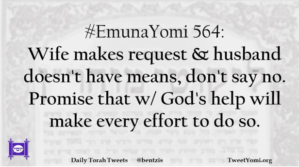 #EmunaYomi 564: Wife makes request & husband doesn’t have means, don’t say no. Promise that w/ God’s help will make every effort to do so.