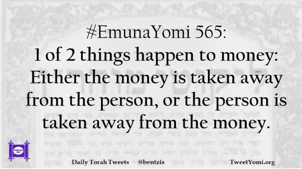 #EmunaYomi 565: 1 of 2 things happen to money: Either the money is taken away from the person, or the person is taken away from the money.