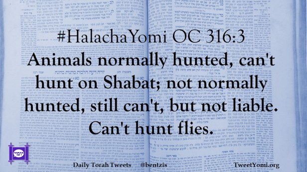 #HalachaYomi OC 316:3 Animals normally hunted, can’t hunt on Shabat; not normally hunted, still can’t, but not liable. Can’t hunt flies.
