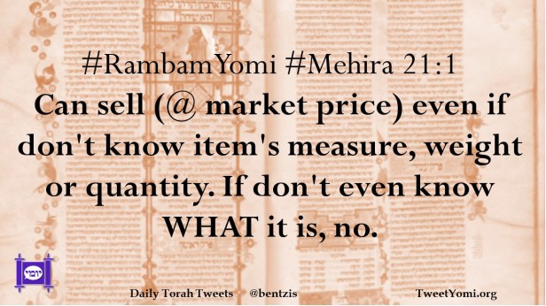 #RambamYomi #Mehira 21:1 Can sell (@ market price) even if don’t know item’s measure, weight or quantity. If don’t even know WHAT it is, no.