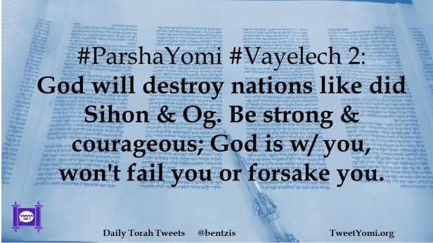 #ParshaYomi #Vayelech 2: God will destroy nations like did Sihon & Og. Be strong & courageous; God is w/ you, won’t fail you or forsake you.