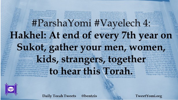 #ParshaYomi #Vayelech 4: Hakhel: At end of every 7th year on Sukot, gather your men, women, kids, strangers, together to hear this Torah.