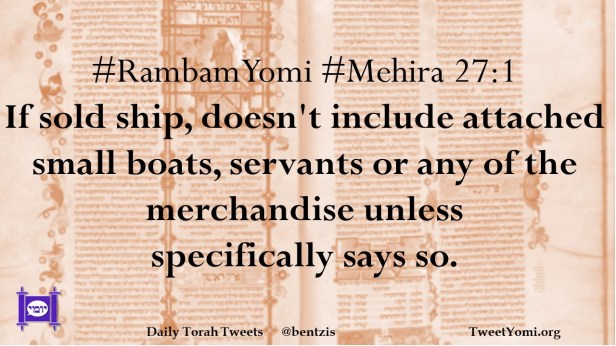 #RambamYomi #Mehira 27:1 If sold ship, doesn’t include attached small boats, servants or any of the merchandise unless specifically says so.