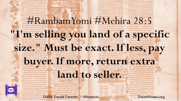 #RambamYomi #Mehira 28:5 “I’m selling you land of a specific size.” Must be exact. If less, pay buyer. If more, return extra land to seller.
