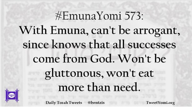 #EmunaYomi 573: With Emuna, can’t be arrogant, since knows that all successes come from God. Won’t be gluttonous, won’t eat more than need.