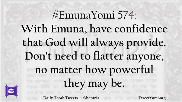 #EmunaYomi 574: With Emuna, have confidence that God will always provide. Don’t need to flatter anyone, no matter how powerful they may be.