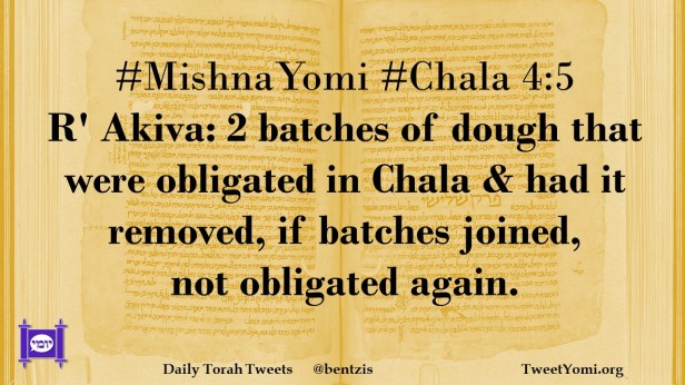 #MishnaYomi #Chala 4:5 R’ Akiva: 2 batches of dough that were obligated in Chala & had it removed, if batches joined, not obligated again.