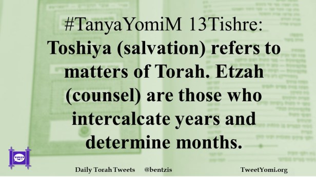 #TanyaYomiM 13Tishre: Toshiya (salvation) refers to matters of Torah. Etzah (counsel) are those who intercalcate years and determine months.