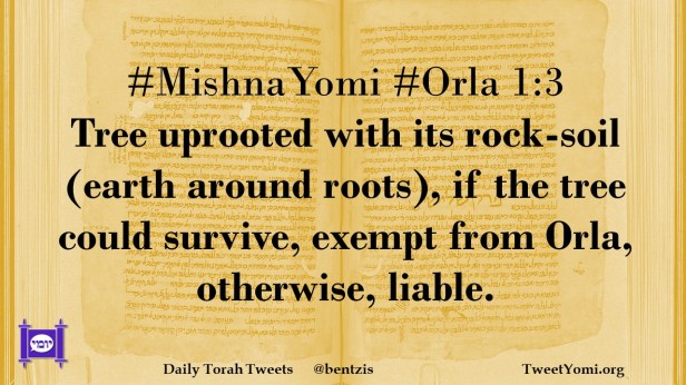#MishnaYomi #Orla 1:3 Tree uprooted with its rock-soil (earth around roots), if the tree could survive, exempt from Orla, otherwise, liable.