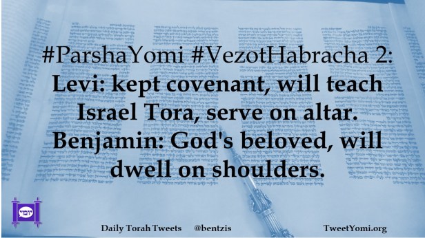 #ParshaYomi #VezotHabracha 2: Levi: kept covenant, will teach Israel Tora, serve on altar. Benjamin: God’s beloved, will dwell on shoulders.