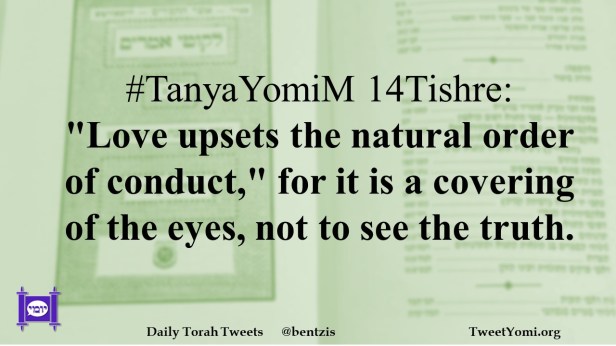 TanyaYomiM #TanyaYomiM 14Tishre Date: February 7, 2023Author: netanelspitz #TanyaYomiM 14Tishre: “Love upsets the natural order of conduct,” for it is a covering of the eyes, not to see the truth. Share this: Share on X (Opens in new window) X Share on Facebook (Opens in new window) Facebook Like Loading... Related